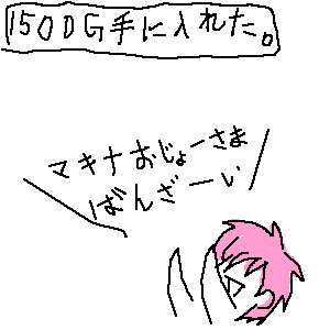 あと、自分の子が大好き主義で語るところ(つまりストーリーに関係ない妄想語り)もあると思うのでそう言うのが苦手な方は退避お願いします。 キャラがわからない方はこちら サンマロウに到着。 早速情報収集に出ることに。 サンマロウの一番大きなお屋敷にはマキナ様というお嬢様が住んでいて、彼女は小さいころに両親をなくして、病弱な体で暮らしていたらしい。 それがある日、万病に効くという金の果実(これ絶対女神の果実だよね)を口にしてから病気が治ったそうな。ただ、その代り性格がちょっと変になって使用人を追いだして今は一人で暮らしているとか。 そのマキナお嬢様と『友達』になると高価な品々がもらえるそうな。ちょっとジ●リの顔梨(誤変換じゃないよ。あえて間違えてるんだよ)みたいと思ったのは秘密…にしてないな。 それと、今の船の所有者はマキナお嬢様だから『友達』になれば船をもらえるかもしれないらしいです。 街の中で気になったのは二人ほど。夜になると集まって話してるし、悪いこと考えてるっぽいのは明白なのですが手を出せそうにないのであきらめることに。 船の番人の計らいでマキナお嬢様の屋敷に入るとまずはあわずに家探し。家探しは冒険の基本です。 とここで宝箱から テンションあげあげですよ、私の。 いや、この街買いそろえるものが多くて(私のプレイスタイルとして武器防具はすべて一個ずつは持たなくてはというルールがあるのでそれだけに売ることもできず、お金だけがどんどん減って行くのですよ)金欠状態で一万以上の武器はあきらめたのですがそれでも買えないのが二つぐらいあったので。 いや、ものもらえるからって友達になるやつ馬鹿かと思っていたのですが妙なところでマキナお嬢様の株がupしました。 まぁ、マキナお嬢様のところに行ってみましたら先客が。 二人とも贈り物を持ってきたみたいなのですが、武闘家の持ってきたケーキは花瓶に飾ると良い、お姉さんが持ってきた髪飾りは今のが気に入っているからと突っぱね、しつこくプレゼントしようとしたら絶交するとか言い始めました。 確かにわがままし放題なうえに変人のようです。 どうでもいい話ですが、お姉さんの方はともかく、武闘家の方は素でマキナお嬢様を気に入っていたみたいでした。その後のイベントとかでもマキナお嬢様を疎ましく思ってる様なセリフが全くなかったので。 とりあえず船が必要だということを伝えると快く友達として了承してくれますが。 セイン君の顔を見てて急に態度が一変。 突然「迎えに来たの?」と意味不明な質問をしてきました。勿論、迎えにきた覚えはないのでいいえを選択したのですが何故かうそつき呼ばわりして部屋に引きこもって行きました。 その時の私。 まさしくこんな感じになってしまいました。 だっていきなり怒鳴られるとは思ってなかったんだもの。 後で、シスターから聞いた話ではマキナお嬢様は病弱だったときに天使が迎えに来ると言っていたそうな。天使ってどうしてばれたんだ? それはともかく、このままだと船も手に入らないので情報を収集していると(おもに今は宿で働いている元使用人とか)人形職人のおじさんにだったら心を開くかもとのことだったのでそのおじさんに会いに行って部屋に引きこもっていることを伝えるとすぐにマキナお嬢様に会いに行ってくれました。 で、戻ってきたら部屋の鍵は空いてるし、なんか『誘拐したから身代金持ってこい』的な置手紙まであって正直どうしたらって感じです。 だって…まさかこうも自分の細かく考えているキャラ設定を意識してくれたようなシナリオが出るとはっ!(ぉぃ この三人にとって誘拐って言うのは軽くトラウマ事項でして。私の各キャラクターの根源って言うのはほとんどが萌えるトラウマ(なんじゃそりゃ)でできているためトラウマ=キャラクターとも言えるぐらい大事な部分です。 まぁ、小説書くことになるかもしれないので深くは言いませんがラスにぃとルリリアちゃんの家は商人の家で金持ちでルリリアちゃんが身代金目当てに誘拐されたことがあるとだけ。 まぁ、困惑していたら突然マキナお嬢様そっくりな幽霊がセイン君たちが入ってきたのとは反対側の扉に立っていたので後を追ってみることに。 すると屋敷の中庭に出ました。 中庭にはお墓が三つ。マキナお嬢様の父と母のもの。そして『友達』 なんのことかわからずにいるとマキナお嬢様そっくりな幽霊が出てきます。 彼女の言い分によると、自分が本当のマキナで自分が病気で死のうとしていた時に金の果実が届けられ、だけど生きることをあきらめていたから果実を食べなかった。かわりに彼女は自分にとって唯一の友達であったマウリヤという名の人形とお話がしたかったと思っているとマウリヤが突然動きだした。 人形だとばれると大変だろうからマキナの振りをして生きること、そしてできれば自分自身の代わりにたくさん友達を作ってほしい…そんな風にお願い
